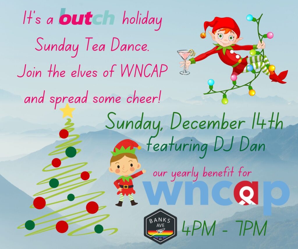 The elves are coming back out for the big holiday event. Our holiday tea dance is supporting the great work of WNCAP. Each year we celebrate this great organization working hard in our community. Join DJ Dan and bring your friends. It’s a festive, fun, fellowship with joy and laughter. Banks Ave Bar- December 14, 4PM-7PM.